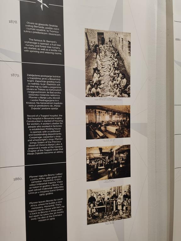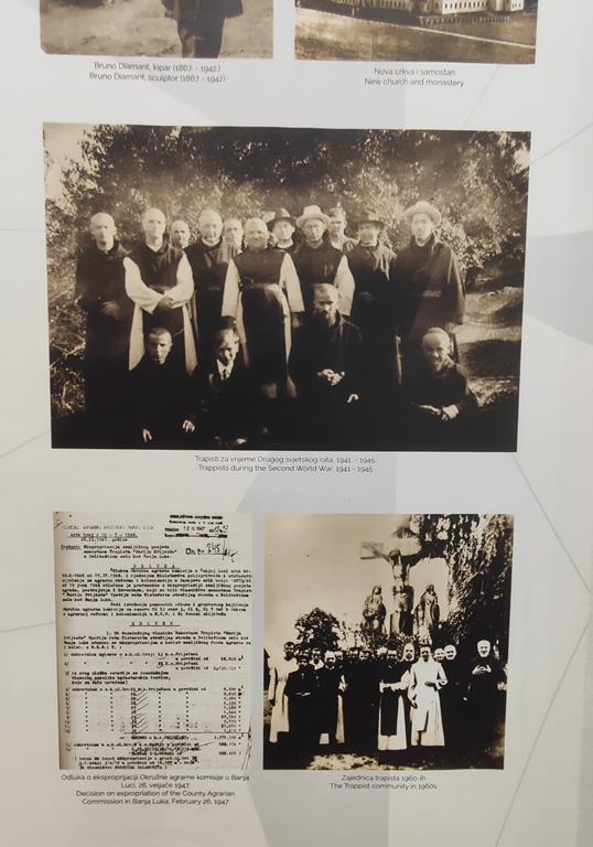 Muzeum ukazuje historię wspólnoty trapistów od najdawniejszych czasów. Szczyt rozkwitu trapistów w klasztorze Maryi Gwiazdy przypadał na drugą połowę XIX w. Trapiści tutejsi, w związku z sytuacją gospodarczą i oświatową w regionie banialuckim, włączyli się w pomoc tutejszej ludności. Prowadzili sierociniec, szkołę, karmili głodnych, zelektyfikowali region (prąd był w Banja Luce dzięki trapistom wcześniej niż w Zagrzebiu), prowadzili wielkie gospodarstwo, produkowali sercy według specjalnej receptury, słynne w kraju i za granicą. Mieszkało tu ok. 200 mnichów. Po II wojnie światowej komuniści przejęli ich majątek. Mnisi jednak nadal tu żyli, tylko w skromnych warunkach, prowadzili studium teologii, z którego korzystali bracia zakonni z różych wspólnot oraz seminarzyści diecezjalni. W latach 90-tych żyło tu i modliło się jeszcze 7 mnichów, kilka lat temu dwóch, teraz – po śmierci pozostałych – został ostatni mnich, o. Zvonek, który pełni tu funkcję proboszcza i… produkuje słynne sery. Ks. Bp Franjo Komarica zwrócił się do niego z podziękowaniem za wierną, wręcz heroiczną posługę w tym miejscu, nazywając go „ostatnim Mohikaninem”. Obok Muzuem znajduje się biblioteka trapistów, zawierająca niezwykłe dzieła. Ks. Bp Franjo oprowadził nas po Muzeum i opowiedział o czasach, w których on sam, najpierw jako seminarzysta, a po latach jako biskup, przyjeżdżał do ojców do klasztoru Maryi Gwiazdy, co potwierdzają fotografie.