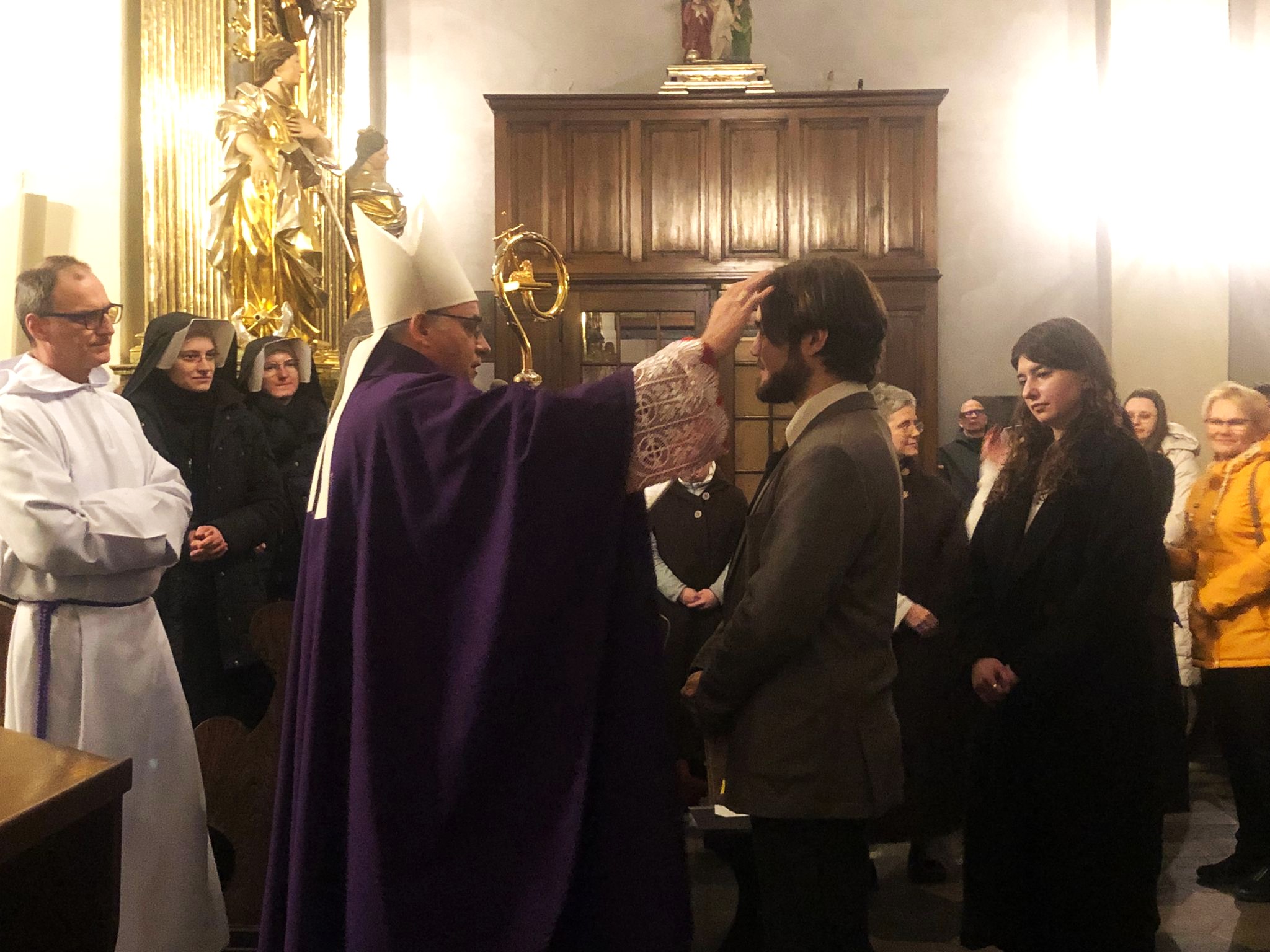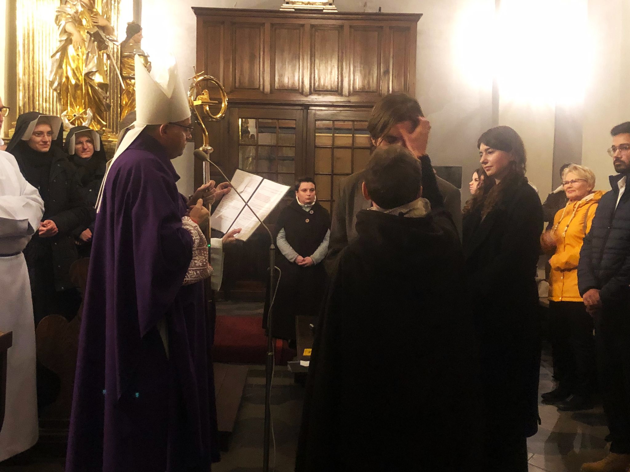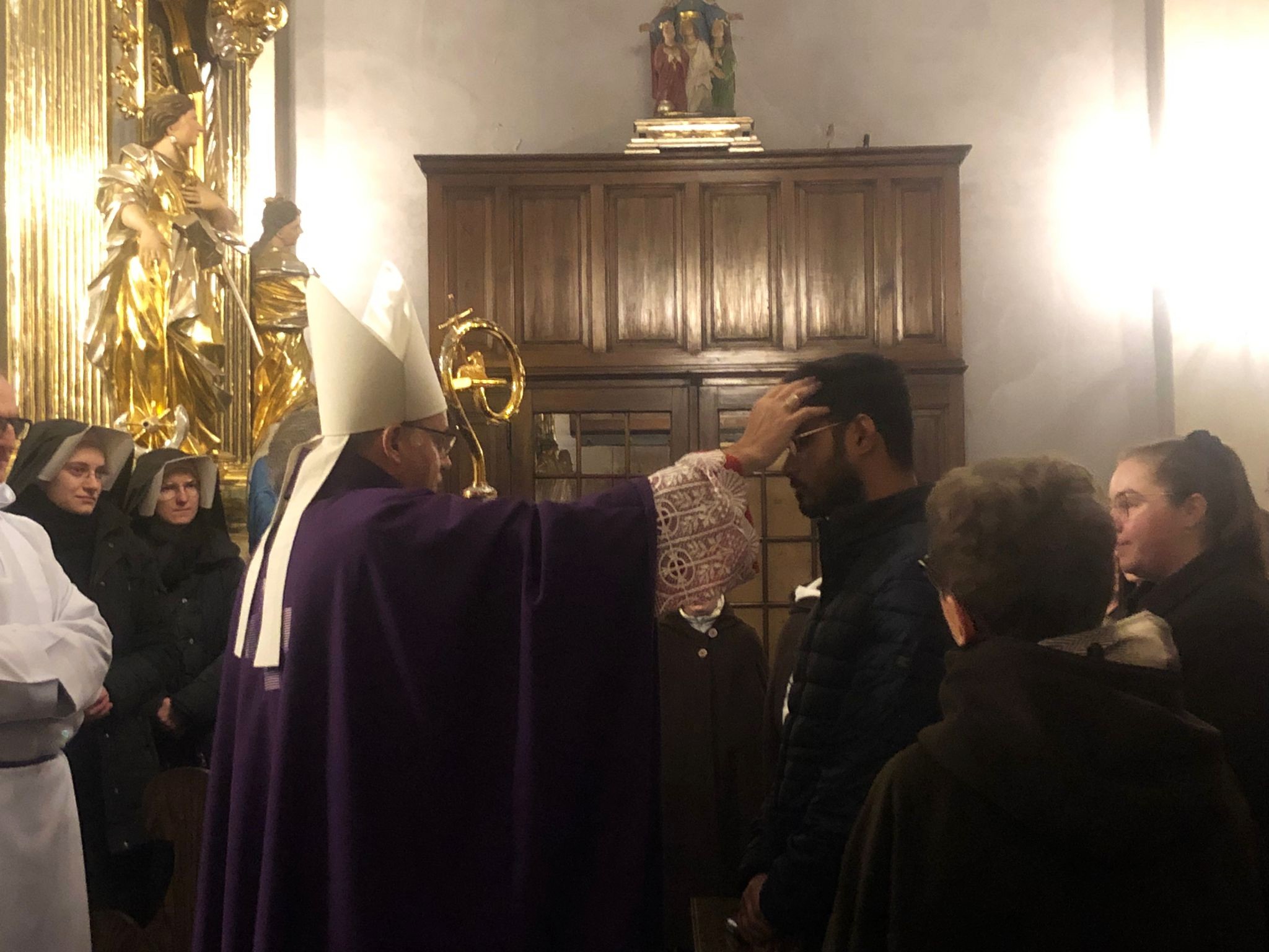 W czwartek 4.12.2025 r. Ks. Bp Robert Chrząszcz podczas Mszy świętej w naszym kościele przyjął do katechumenatu ośmiu kandydatów do chrztu. Wręczył im krzyż i Ewangelię – znaki przynależności do Chrystusa i naznaczył ich zmysły znakiem krzyża, by się otwarli na działanie łaski. Kolejni kandydaci są już w drodze. Ogarnijmy ich modlitwą. Po Mszy świętej przeżywaliśmy agapę – był czas na spotkanie, rozmowy i na posilenie się smakołykami przygotowanymi przez siostry i przyjaciół Katechumenatu.