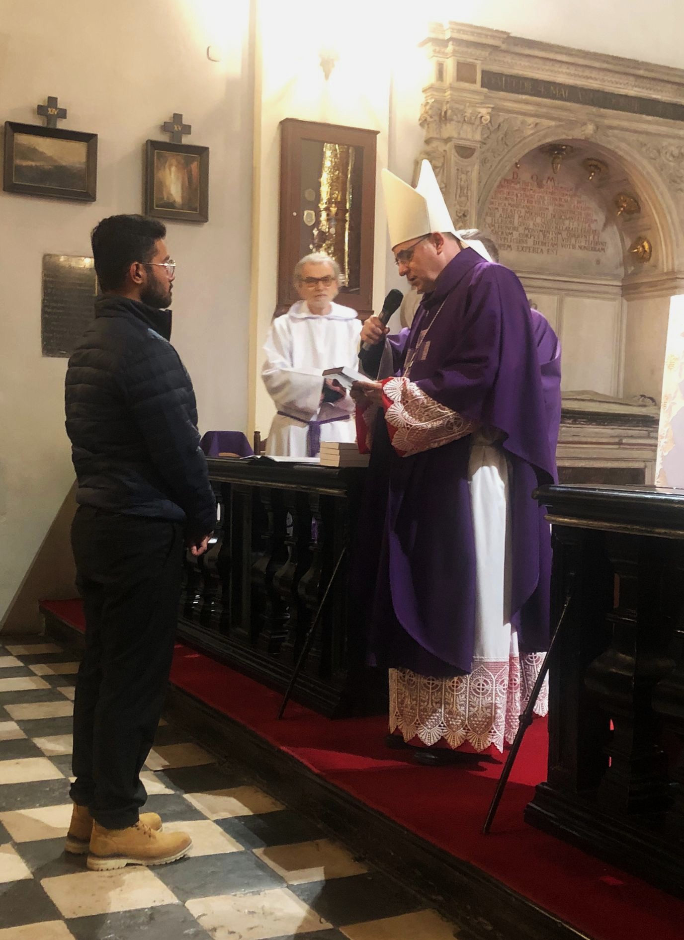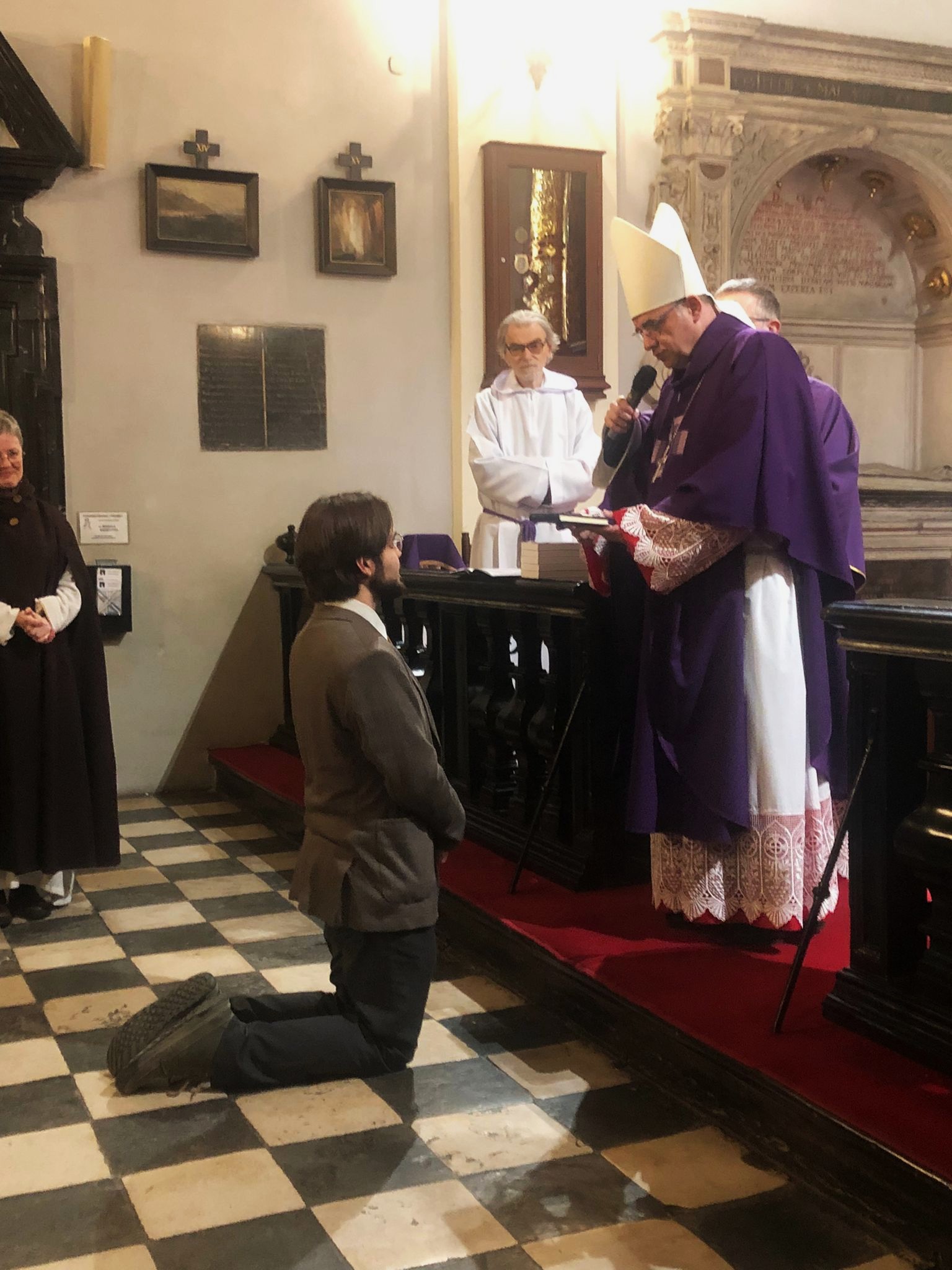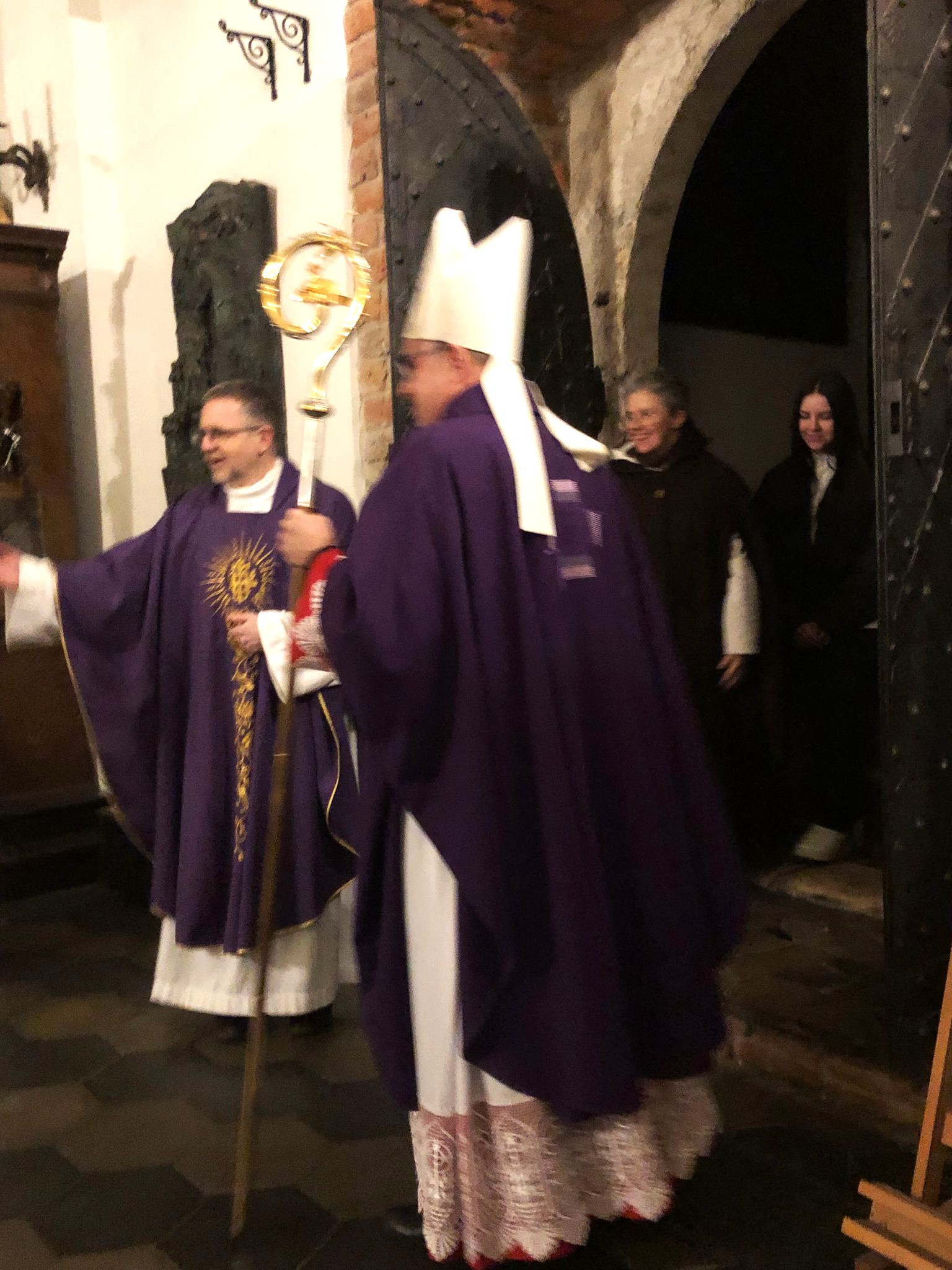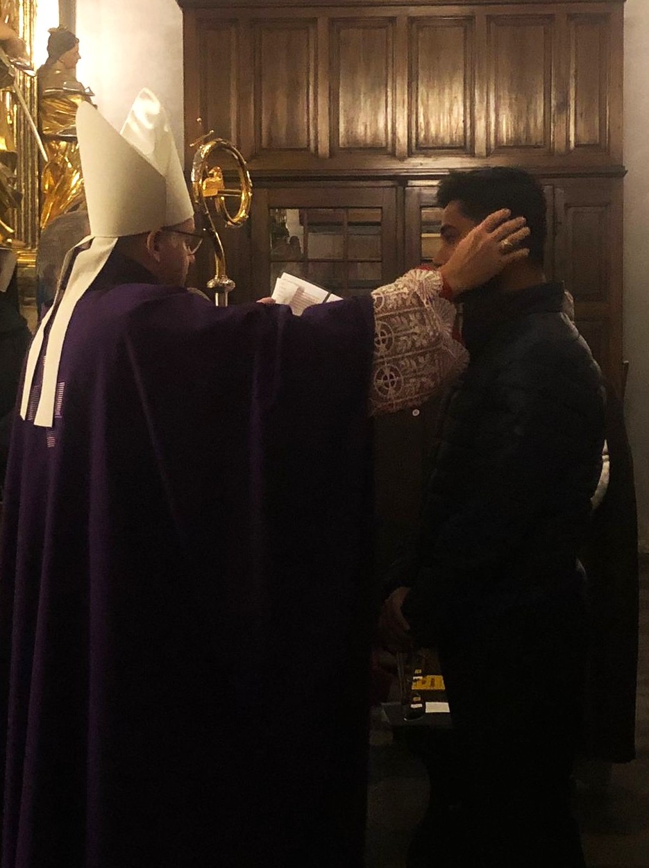 W czwartek 4.12.2025 r. Ks. Bp Robert Chrząszcz podczas Mszy świętej w naszym kościele przyjął do katechumenatu ośmiu kandydatów do chrztu. Wręczył im krzyż i Ewangelię – znaki przynależności do Chrystusa i naznaczył ich zmysły znakiem krzyża, by się otwarli na działanie łaski. Kolejni kandydaci są już w drodze. Ogarnijmy ich modlitwą. Po Mszy świętej przeżywaliśmy agapę – był czas na spotkanie, rozmowy i na posilenie się smakołykami przygotowanymi przez siostry i przyjaciół Katechumenatu.