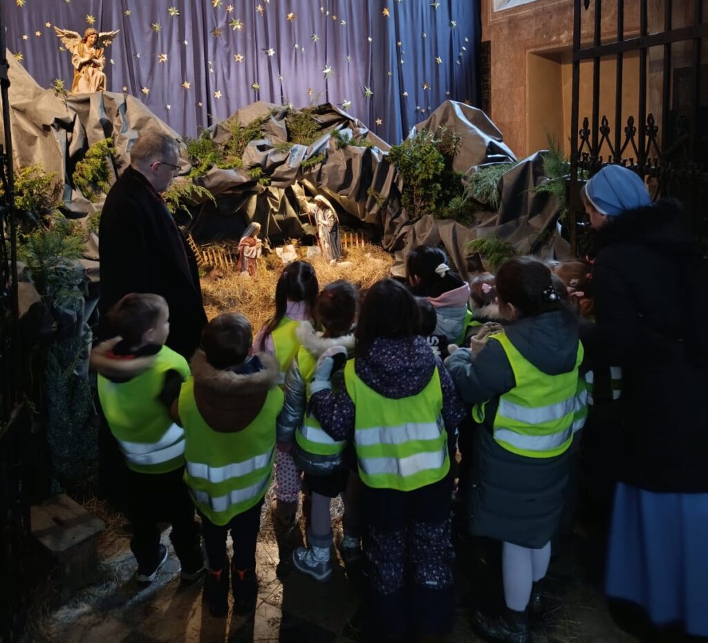 Przedszkolaki w naszym kościele 2026-01-08 | Brak komentarzy | Aktualności, Wydarzenia 8 stycznia do naszego kościoła przybyła grupa przedszkolaków z Ochronki prowadzonej przez siostry służebniczki dębickie. Odwiedziły Pana Jezusa w szopce, modliły się i kolędowały.