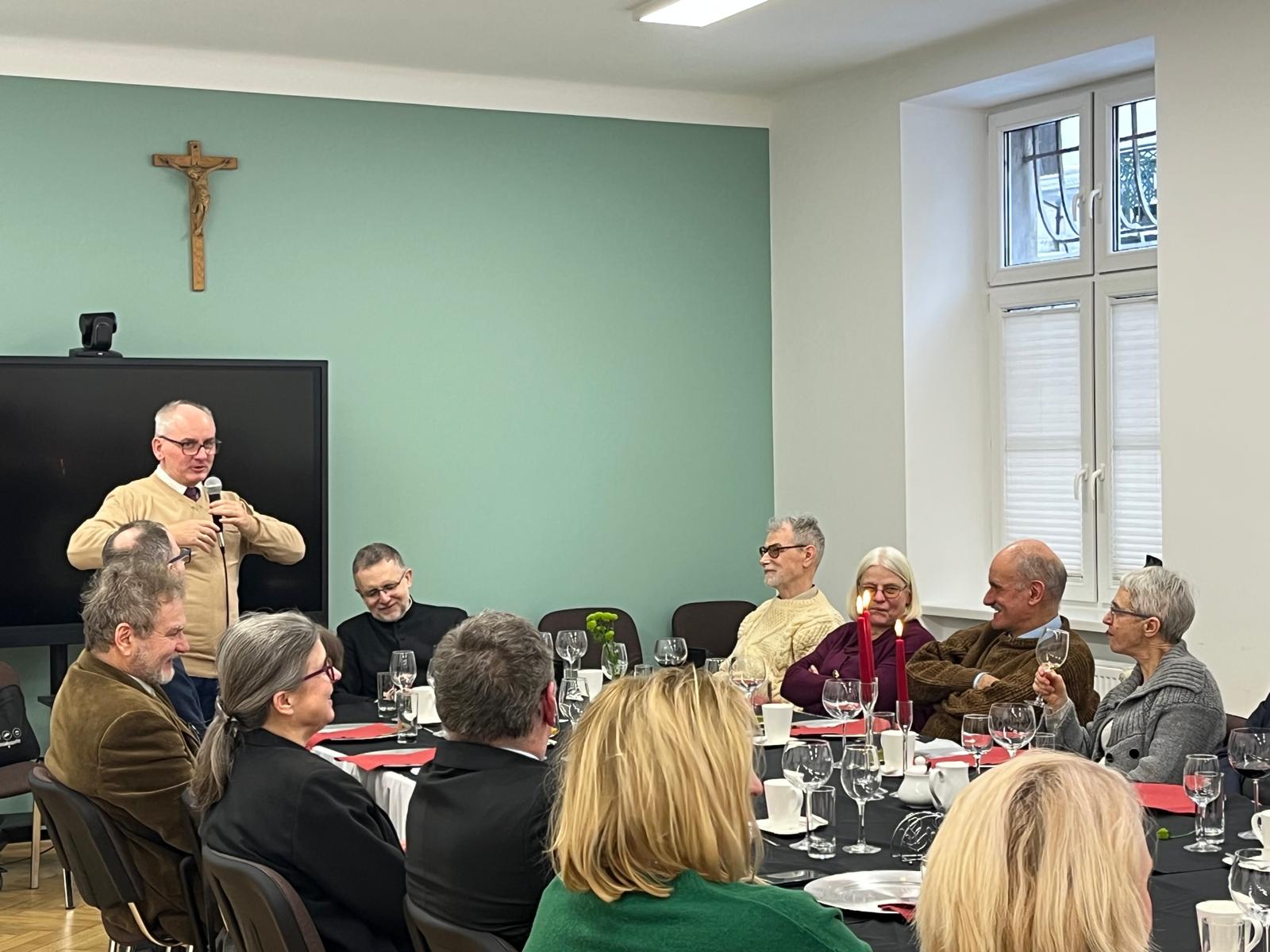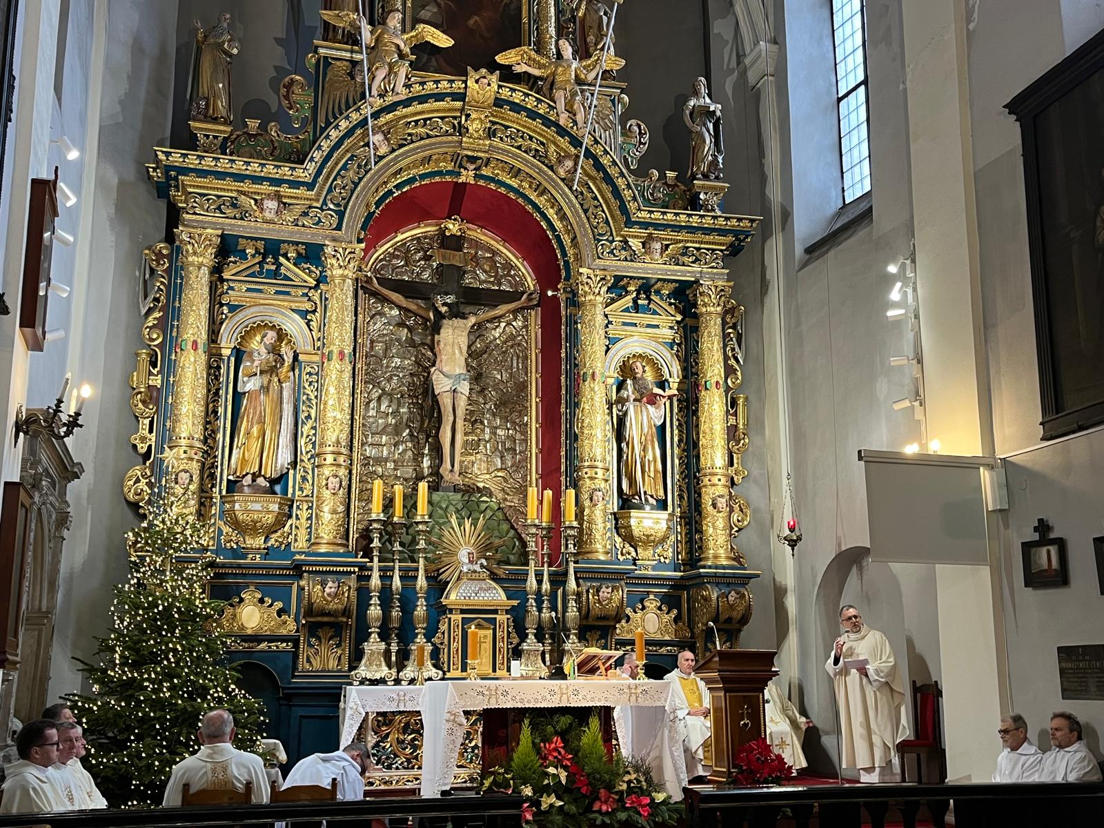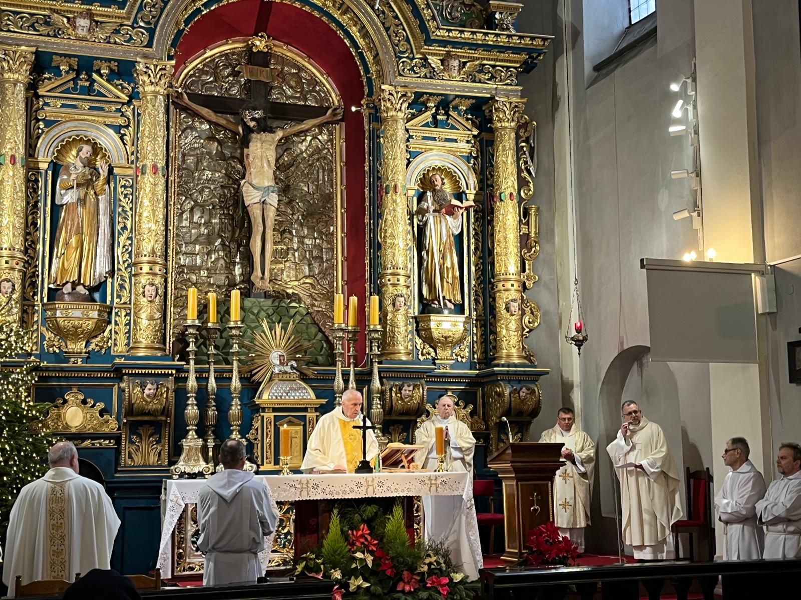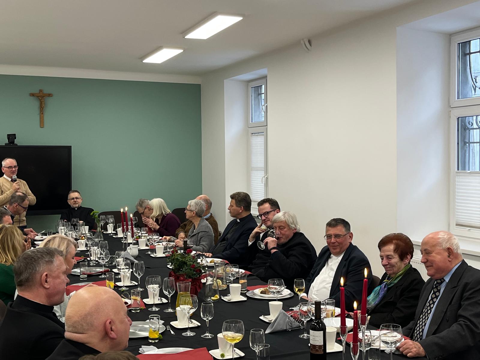 Dzisiaj podczas uroczystej Mszy świętej o 11.30 dziękowaliśmy za jubileusz 40-letniej organistowskiej posługi Pana Profesora Wiesława Delimata w naszym kościele. Eucharystii przewodniczył ks. prałat Franciszek Motyka, homilię wygłosił rektor Uniwersytetu Papieskiego Jana Pawła II w Krakowie – ks. profesor Robert Tyrała. Na tę okoliczność list gratulacyjny do pana Profesora Wiesława Delimata skierował także Ks. Kardynał Grzegorz Ryś. Byli zgromadzeni zaprzyjaźnieni kapłani i przyjaciele pana Profesora. Szczególne podziękowania do Jubilata skierował rektor naszego kościoła – ks. Andrzej Wójcik. Po Mszy świętowanie było kontynuowane podczas uroczystej agapy z przyjaciółmi związanymi z panem Profesorem oraz z osobami posługującymi w naszym kościelem – wśród wspomnień i wyrazów wdzięczności.