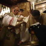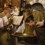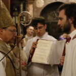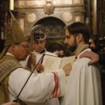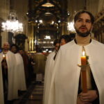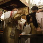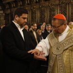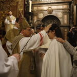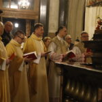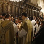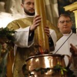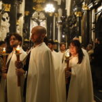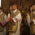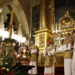4 kwietnia 2026 r., w Wigilię Paschalną celebrowaną w Katedrze Wawelskiej 12 wybranych przyjęło z rąk Ks. Kardynała Grzegorza Rysia sakramenty wtajemniczenia chrześcijańskiego. 11 osób przygotowywało się w naszym Ośrodku Katechumenalnym, jedna osoba w parafii pw. św. Brata Alberta w Krakowie. Celebracja rozpoczęła się o 21.00 Liturgią światła, potem przeżywaliśmy Liturgię Słowa (czytania przeprowadziły nas przez Historię Zbawienia), komentowaną w trzech homiliach przez Ks. Kardynała. Potem zostało otwarte źródło chrztu dla naszych Wybranych – wyrzekli się zła, wyznali wiarę, przyjęli sakrament chrztu, bierzmowania i po raz pierwszy zjednoczyli się z Chrystusem w Komunii świętej. Idąc dalej, wszyscy pozostali wierni odnowili przyrzeczenia chrzcielne i zbliżyli się do Pana. Na zakończenie udaliśmy się wszyscy w procesji rezurekcyjnej, by wraz z dzwonem Zygmunta obwieścić światu, że Pan zmartwychwstał i żyje. Że jest w nas i pośród nas! Poniżej zamieszczamy galerię zdjęć (fot. Biuro Prasowe Archidiecezji Krakowskiej).