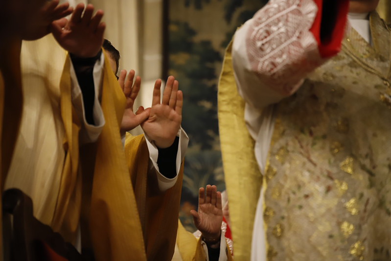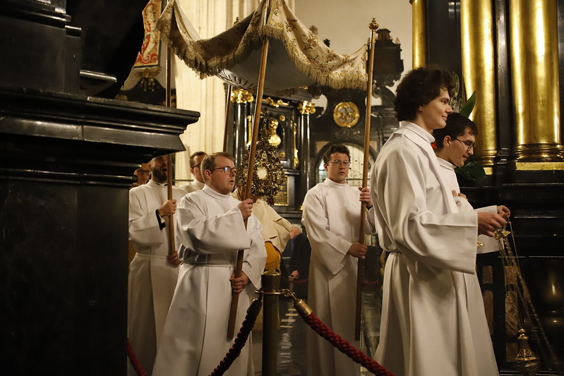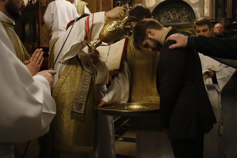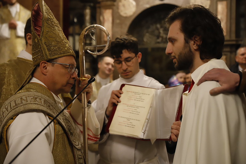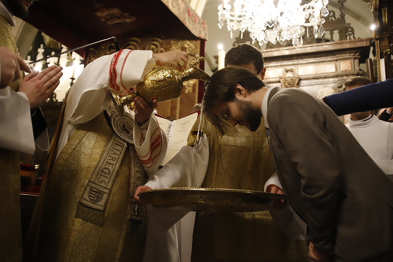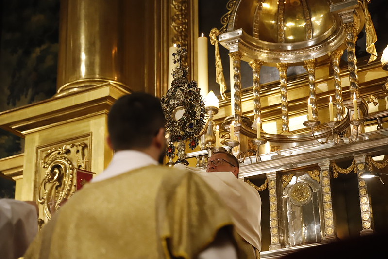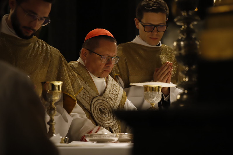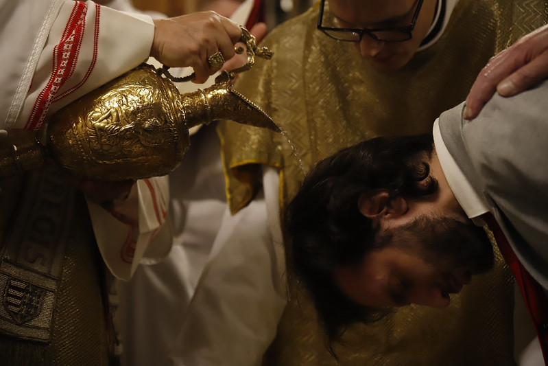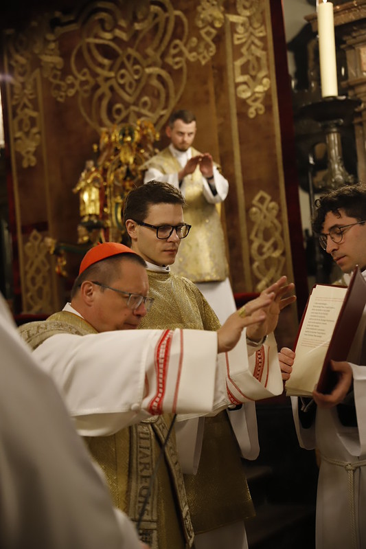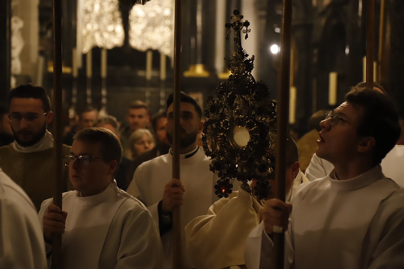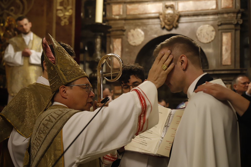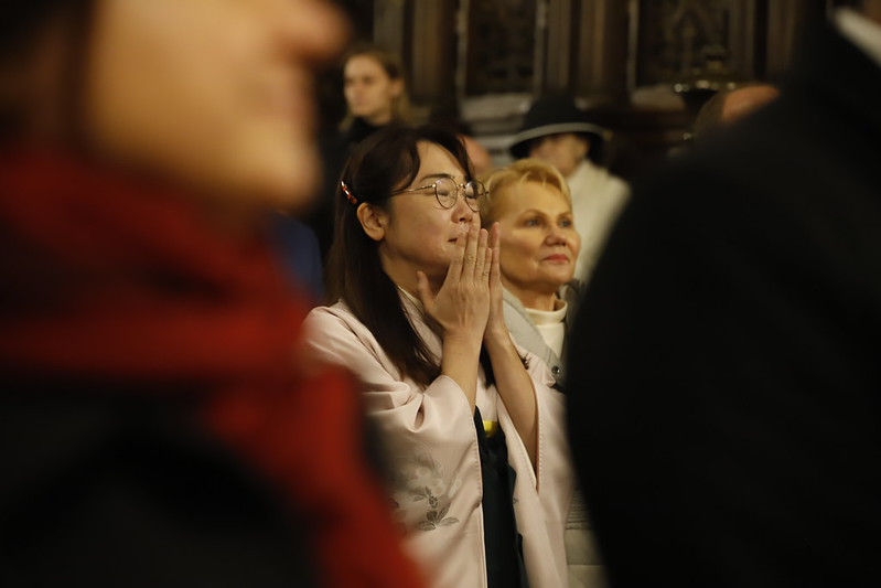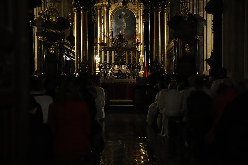4 kwietnia 2026 r., w Wigilię Paschalną celebrowaną w Katedrze Wawelskiej 12 wybranych przyjęło z rąk Ks. Kardynała Grzegorza Rysia sakramenty wtajemniczenia chrześcijańskiego. 11 osób przygotowywało się w naszym Ośrodku Katechumenalnym, jedna osoba w parafii pw. św. Brata Alberta w Krakowie. Celebracja rozpoczęła się o 21.00 Liturgią światła, potem przeżywaliśmy Liturgię Słowa (czytania przeprowadziły nas przez Historię Zbawienia), komentowaną w trzech homiliach przez Ks. Kardynała. Potem zostało otwarte źródło chrztu dla naszych Wybranych – wyrzekli się zła, wyznali wiarę, przyjęli sakrament chrztu, bierzmowania i po raz pierwszy zjednoczyli się z Chrystusem w Komunii świętej. Idąc dalej, wszyscy pozostali wierni odnowili przyrzeczenia chrzcielne i zbliżyli się do Pana. Na zakończenie udaliśmy się wszyscy w procesji rezurekcyjnej, by wraz z dzwonem Zygmunta obwieścić światu, że Pan zmartwychwstał i żyje. Że jest w nas i pośród nas! Poniżej zamieszczamy galerię zdjęć (fot. Biuro Prasowe Archidiecezji Krakowskiej).