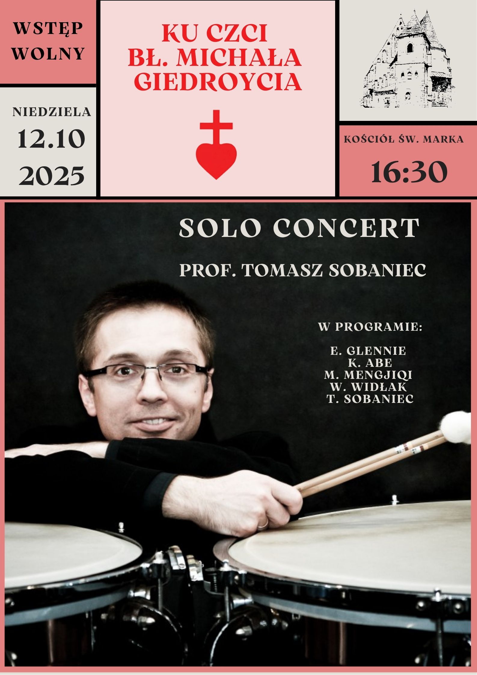 W niedzielę 12.10. zapraszamy do naszego kościoła o godz. 16.30 na koncert ku czci bł. Michała Giedroycia w wykonaniu Tomasza Sobańca. Profesor Tomasz Sobaniec od 1995 r. pracuje w Akademii Muzycznej w Krakowie w Katedrze Muzyki Współczesnej Jazzu i Perkusji. Jest także współzałożycielem i…